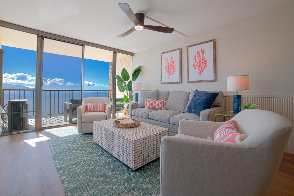 Enjoy the panoramic ocean view directly from the living room. This wonderful ground floor unit offers privacy and tranquility with expansive ocean views, where you can enjoy seasonal whale watching, paddle boarding, surfing, snorkeling as well as many other activities just outside your door. The unit is also adjacent to one of the longest beaches on Maui, Sugar Beach. And just down the road you will find great shopping, restaurants, nightlife and the Maui Ocean Center.