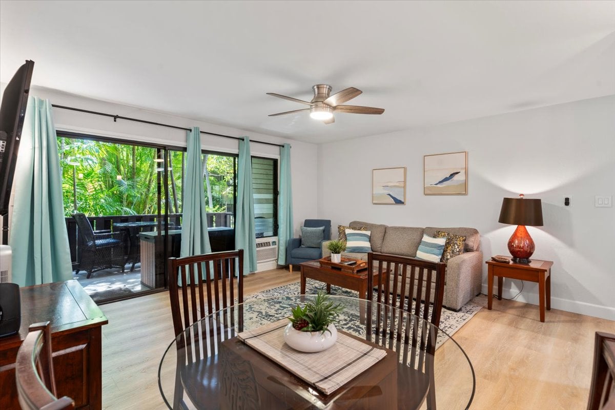 Live like a local during your stay at Kihei Bay Vista unit D110. This ground floor unit features a large lanai overlooking the tropical green lawn, mere moments from the sparkling shore! Our private oasis provides you a home away from home with a king sized bed, full bathroom, full kitchen, full size in-unit washer & dryer with a living area that includes a queen size pull out couch for up to 2 extra guests. Prime location near the best beaches and for easily exploring other parts of Maui.
