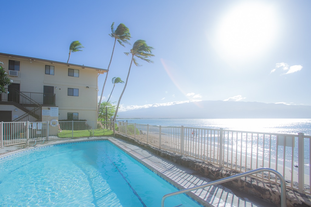Escape to this ground floor beachfront unit for the ultimate relaxation. Extensively remodeled kitchen and bathroom with new flooring, ceiling fans, and split A/C in living room and bedroom. Wake up to the calming sounds of the sea, watch whales from your living room, and share the beach with sea turtles. Enjoy direct access to the grassy area and beach, basking in abundant sunshine.