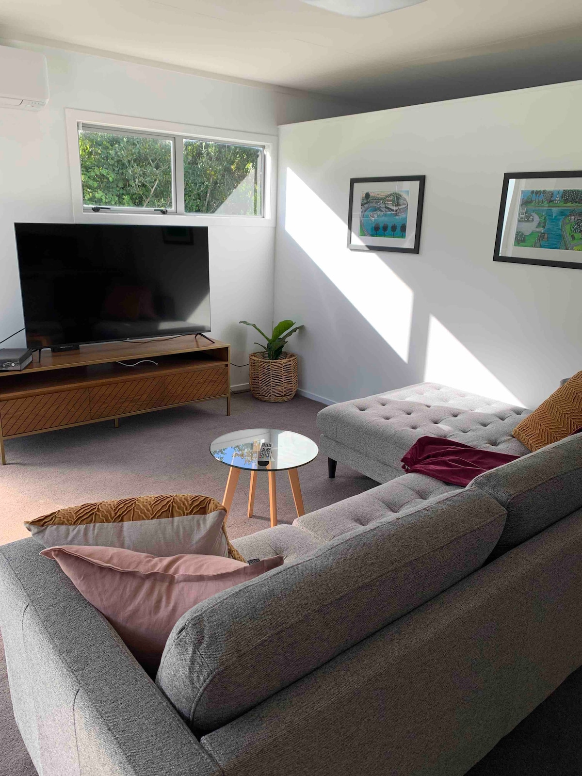 Modern 7yr old one bedroom guest house. Separate lounge and kitchen, bathroom with shower and toilet. Attached to main family house but separated by two garages giving privacy. The space is suitable for couple wanting a quiet getaway with separate entrance to the family home. 1 min walk to 1 of nz’s best surf beaches and short drive to others beautiful beaches/surf breaks and Gisborne Town .