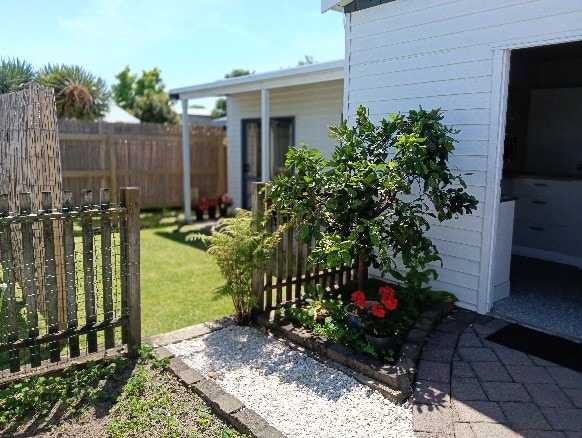 Built in 2015 as a granny flat with kitchenette and private bathroom including excellent gas heated shower. Spacious and separate to main house so very private. Can easily accommodate two adults plus 1 child at no extra cost (queen bed + sofa). Own carpark, outdoor kitchen sink with hot/cold water. Toaster, microwave, electric frypan, small BBQ available. Unlimited wifi. Access to washing machine. Complimentary tea & coffee. ** N.B. there is no hot plate or kitchen sink inside the dwelling. **