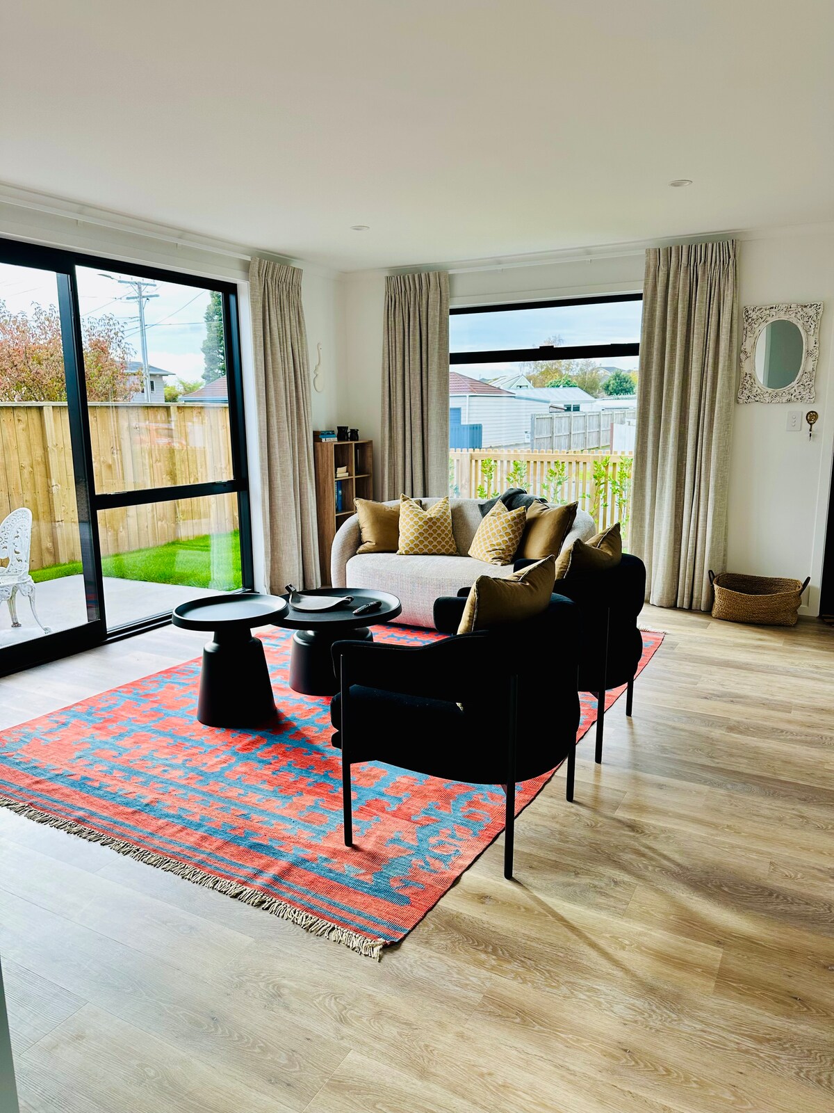 Two modern bathrooms Two king beds one queen bed Dble sofa bed 1 single bed on request Electric blankets GST Invoice Air Conditioning ducted to each room Lockable garage inter access BBQ Rice Cooker Smart TV 5 min flat walk to village Enquire re pets Fully equipped kitchen Nespresso Machine Towels/shampoo/shower gel/2 hairdryer 2 Portacot on request Wifi Unlimited Garage, with remote Park also in driveway Washing Machine Clothes line Dryer 2 bikes Secure / private back garden