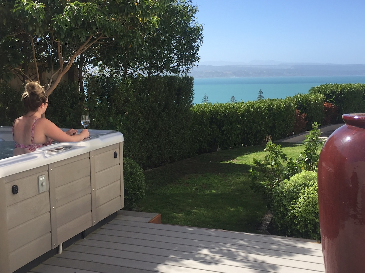 A stylish, small apartment with sea views and privacy On Napier's popular Marine Parade and cycle way Two bedrooms with own ensuite bathrooms High cleaning standard, consistently praised in our reviews The living space has floor to ceiling double glazed windows, with dining counter The Queen bedroom, has an ensuite bathroom and balcony The spacious King room, sunny with ensuite bathroom fitted with Washer & Dryer AirCon and double glazing for quiet, cosy apartment. 3 SmartTVs with Netflix.