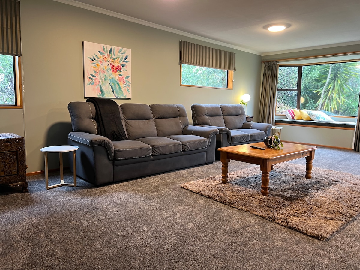 Holidaying on Hunter is a fully airconditioned stylish home, boasting sunny open plan living with north facing outdoor area to enjoy our long summer evenings. You cant beat our location, just 2 minutes walking to the centre of town, with playgrounds and cafes at your convenience. Dining in is a breeze with the pizza oven or BBQ. Modern furnishings and open plan living are key, with the log burner for winter and gas hot water. Also off street parking for boats.