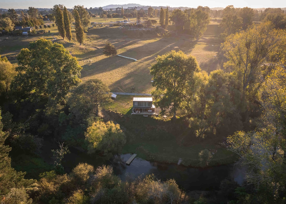 Experience our bespoke, solar powered cabin, rustic but surrounded by nature. With an outdoor bath, ( not hot tub) overlooking the river. This private area is perfect for unwinding and reconnecting with yourself. Wear covering clothing outdoors for insects 15 minutes from Hobbiton, close to Te Waihou Blue spring and Waiwere falls. Arriving at night, follow the solar lights. Dogs are welcome but no aggressive dogs. Please take your waste with you, we have don’t have bins in rural areas.