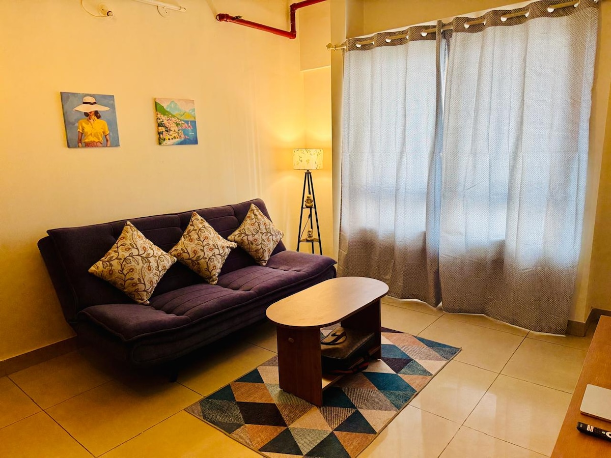 Wake up to stunning sunrise views at The Cozy Cove, a serene retreat in Pune’s Blue Ridge Township. This modern, fully-furnished apartment features a cozy sofa cum bed, a restful bedroom with soft linens, and elegant interiors designed for comfort and style. Enjoy Netflix and chill nights on the smart TV, a serene balcony setup, and a sleek modular kitchen equipped for all your needs. Perfect for couples or small families, it’s a peaceful escape with all the conveniences of home.