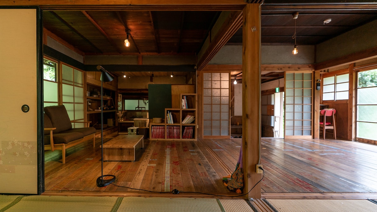 Japanese log house with BBQ space and private river. You can enjoy fishing a amago, watching beautiful stars. There is a private sauna. After sauna, you can dive into a river. In June you can watch ire flies. All the rooms are made by Japanese special wood , Hinoki and sugi. The smell is amazing. This area is really tranquil and you will be able to make relaxed. And easy to get to Koya-san (40 min by a car)