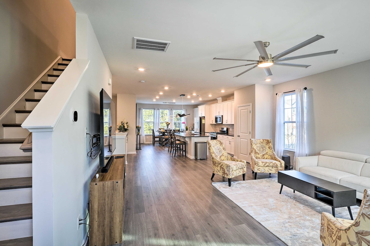 Comfort and convenience await at this newly built North Carolina vacation rental situated just 6 miles from downtown Durham! This end-unit townhome features a bright interior with 4 bedrooms, 3.5 bathrooms, all-new furnishings, high-end kitchen appliances, and plenty of space to gather. Visit loved ones at Duke University, go for a stroll in Bethesda Park, or explore downtown hotspots! Later, you can relax with community perks like swimming pools, a 24-hour fitness center, a game room, and more!