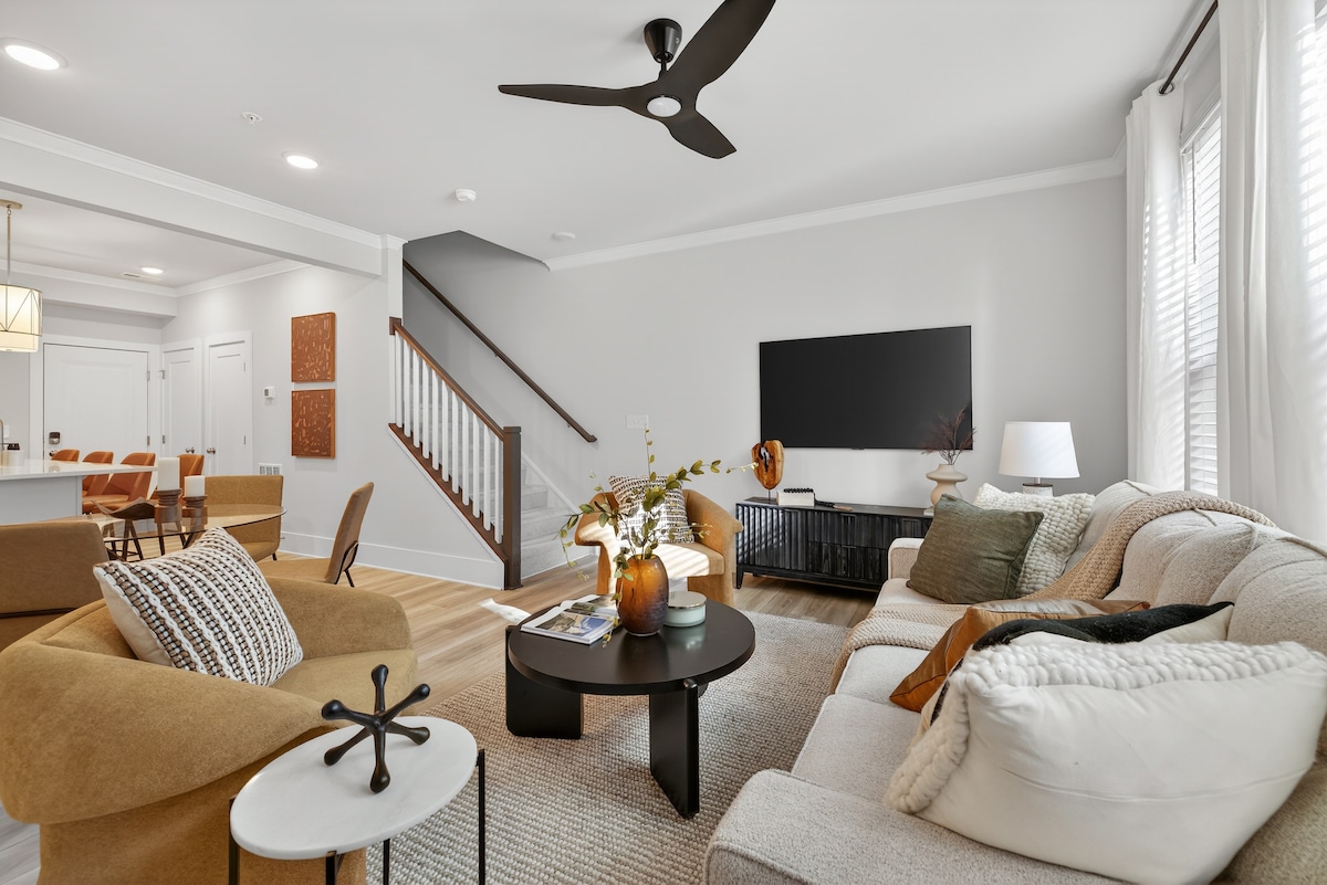 靠近市中心Cary 2 |加大双人床|巨大的75英寸电视