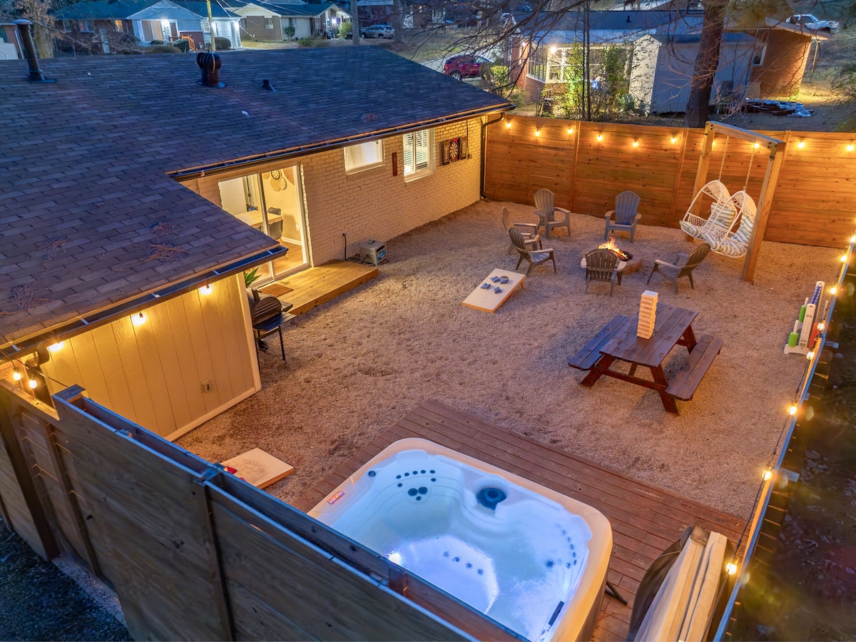 靠近罗利市中心•热水浴缸•火坑•烧烤•游戏