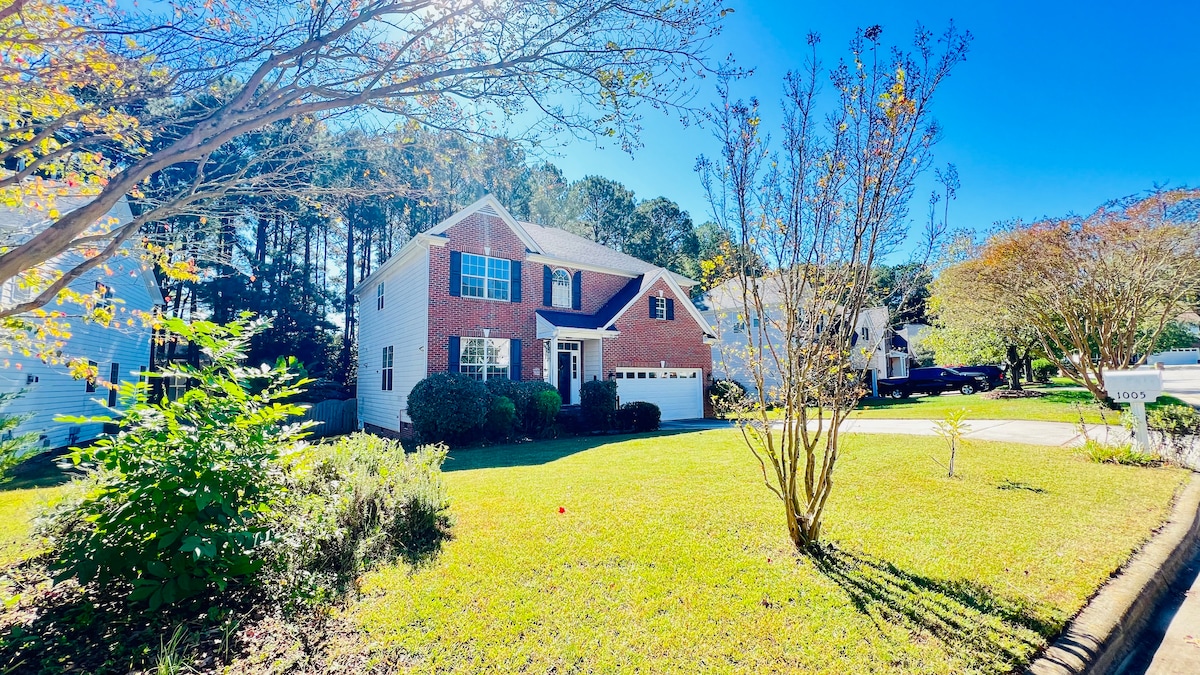 GATHER YOUR FRIENDS AND FAMILY! Welcome to our newly updated home in Raleigh! With movie nights and relaxation in mind, our home is the perfect retreat for families or groups of friends seeking a fun and memorable visit or staycation in Raleigh. It is conveniently only 15 minutes from downtown Raleigh. The 4 bedrooms can comfortably accommodate a total of 8 guests. Guests will also have access to the movie theatre upstairs, outside deck w/ comfy seating and grill, and office (perfect for WFH).