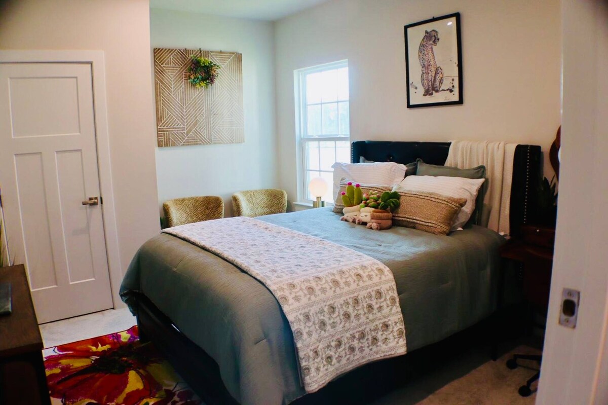 NATURE + NURTURE intersect in this fresh, spacious, modern, cozy, peaceful respite for high achievers with uber comfort in mind. Centrally-located in Midtown, minutes from major roads, hospitals, North Hills, shopping, restaurants, night life + bike trails. Across the street is Eastgate Park, private lake, walking trails, tennis courts + playgrounds. A creek runs at the back of your large backyard. Your host is a long-time NC resident, hospitality veteran + welcomes special requests.