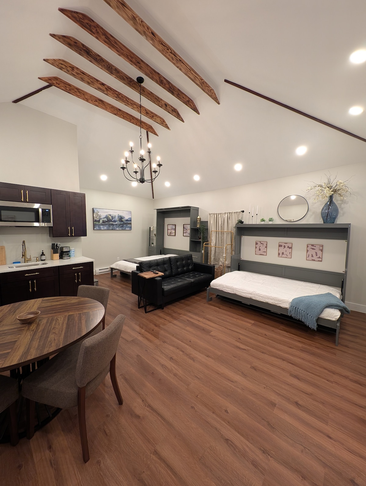 Discover the perfect blend of style and serenity at this newly renovated studio and artfully designed, this chic studio offers the perfect blend of comfort and convenience—just a 30-minute train ride to Grand Central. Adjacent to the main house, it features two plush queen beds, fast Wi-Fi, smart TV, heat & AC, and a cozy kitchenette. Enjoy free street parking and unwind in a peaceful neighborhood after exploring the vibrant heart of NYC.