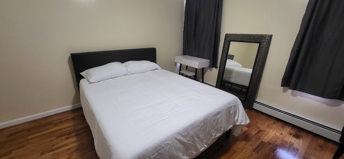 The house is 2.5 blocks away from #5 train, Bx12, Bx8 bus; walking distance to restaurants, Pharmacies and Jacobi Hospital. Bronx Zoo, NYC Botanical Garden, and City Island are about 10 minutes driving. The block is quiet and there are plenty of spaces for street parking. Water, Heat, AC, Internet, and Electricity will be provided. This room also has its own bathroom, a mini refrigerator, and a 43 '' Samsung TV. Other areas including living room, dining room and kitchen will be shared.