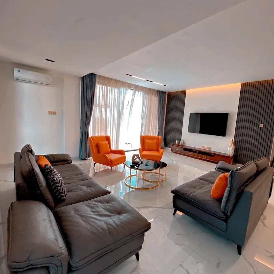 Its very nicely big fully furnished apartment attractive,well decorated clean and modern property will spice up your holiday stay in kampala Uganda .The house has 4 bedrooms a living room ,dining area , 3 showers with hot water . Well equipt kitchen a balcony with a good view of the lake Victoria The entere house is rented out living room as a large screen flat smart Tv with DSTV