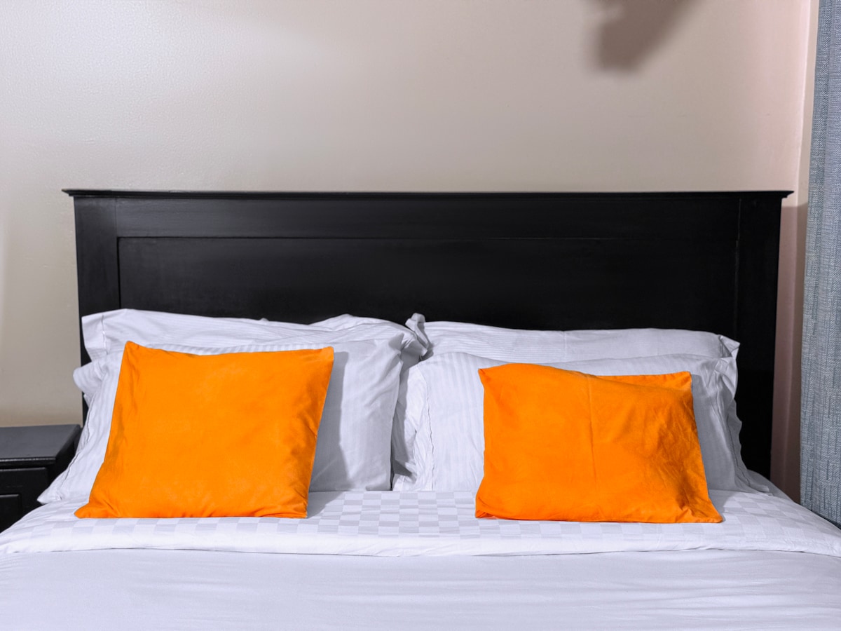 This is a Beautiful spacious ,charming, studio furnished and serviced apartment in the heart of Entebbe, just next to via via travelers cafe. We offer free Breakfast. Perfect for weekend getaway ,staycation. Unbeatable Location just 15 minutes Away from Entebbe International Airport. Fully functional kitchen , king size bed , washing machine ,private bathroom, 65-inch tv ,Netflix and wireless Wi-Fi. Air conditioning,24 hours security guards with outdoor cameras and a stand by generator.