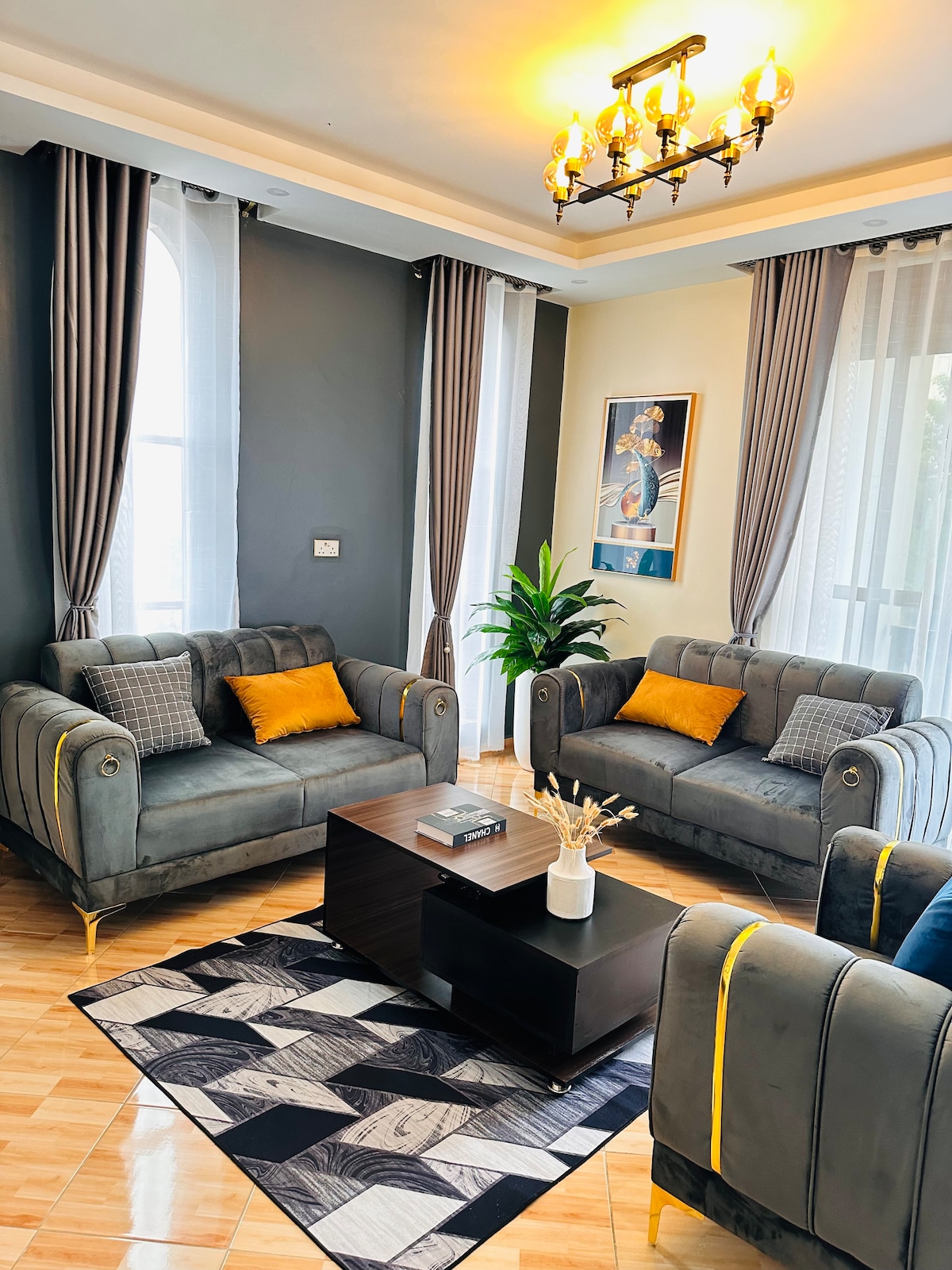 A cozy family home in Muyenga close with 2 bedrooms, 2 spacious bathrooms, spa showers, sitting room, stocked cookroom, washing machine, 60 inch cable tv, unlimited wifi (Mtn fibre). Nestled steps away from ssebo green swimming pool, International Hospital Kampala, malls, restaurants, kids world water park. The modern amenities and contemporary decor brings a relaxing experience anyone can enjoy. Enjoy a stylish experience at this centrally-located place.