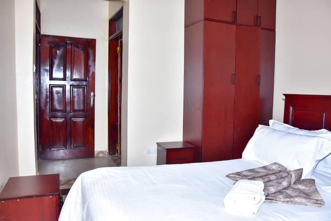 Perfect your getaway at this modern spacious 1st-floor apartment with access to a private Lake Victoria beach. Fully furnished and equipped, perfect for families and remote workers. Enjoy the convenience of SELF CHECK-IN, stay connected with FREE 5G Wi-Fi, a BACK-UP POWER INTERTOR that ensures the power never goes out. FREE PARKING 20 mins to Entebbe Airport, 40 mins to Kampala Central, secured within the Pearl Marina Estate’s perimeter wall, only accessible through a 24/7 manned security gate.
