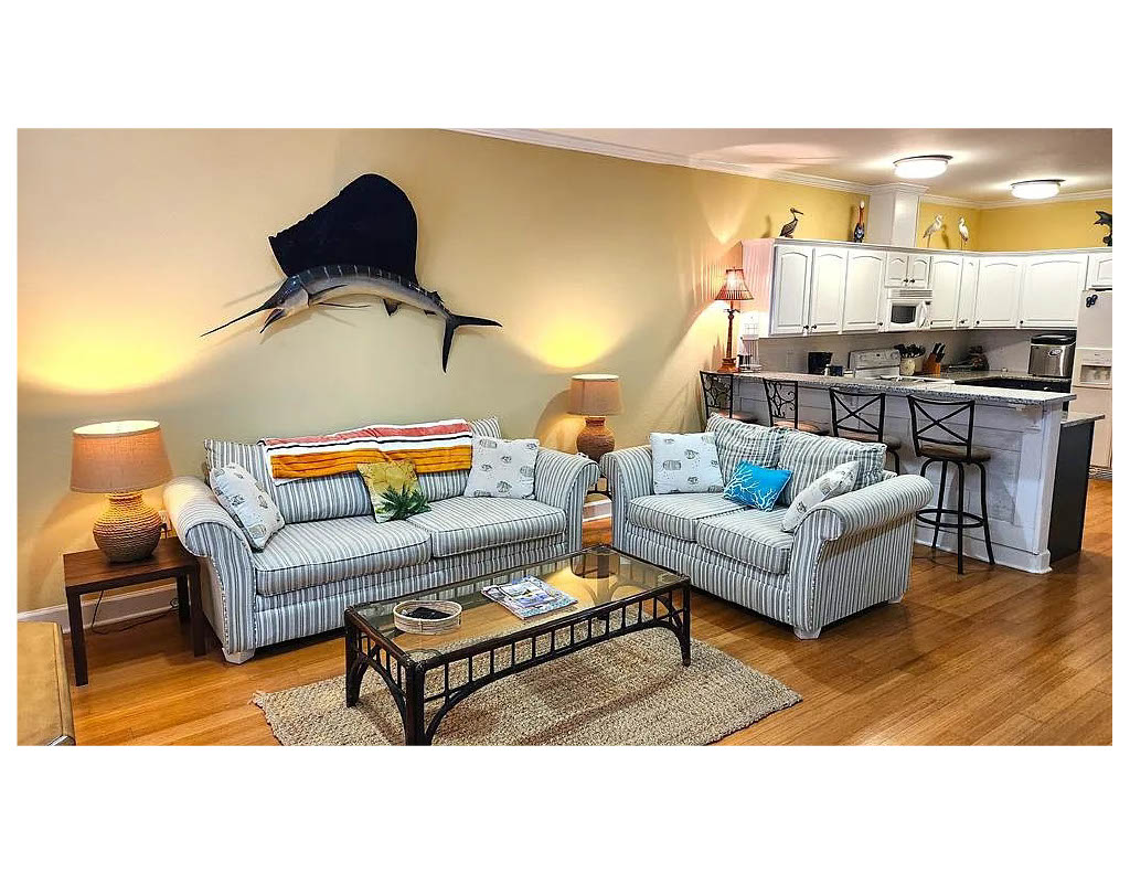 This lovely condo on Florida's "Forgotten Coast" provides guest with a beautiful view and tranquility only seen in this area of Florida. Located in St. James in Franklin county, you are 44 miles from the Tallahassee airport, it is convenient to a big city, while set in a quiet, rural beach area. You are only minutes from St. James Golf club, Carrabelle (7 miles away with public beach), St. George Island, Panacea and Apalachicola. Swimming not recommended (more like a bay).