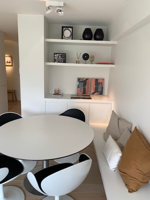 Studio b-line Blankenberge is a renovated studio (35m2) with beautiful sea view on the Zeedijk (4th floor Sealing1). Terrace for apero or morning coffee. 2-person sofa bed + bedside cabinet with 2 single beds. Sheets and towels for rent, on request. Bathroom with washbasin, shower and toilet. 15km from Bruges, 1.3km from the train station and 1.3km Casino, restaurants, beach bars, sealife, serpentarium, in the Leopold Park: mini golf, children's playground, table golf, kids go-carts. Bike rental