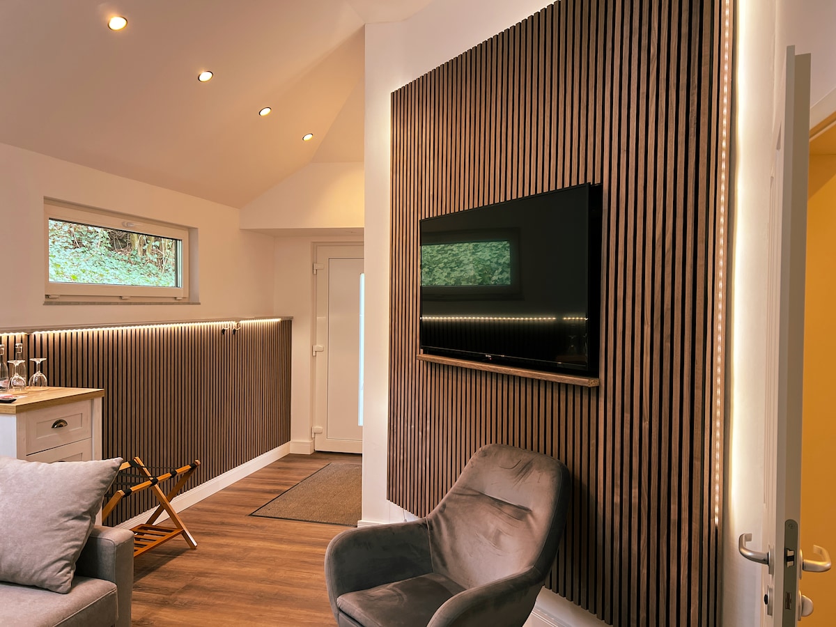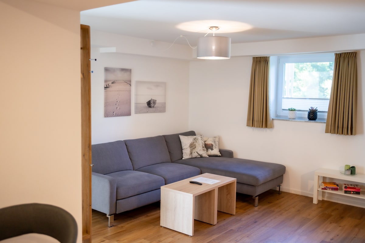 The room can accommodate 9 people.A spacious living room with a fully equipped kitchen,2 bedrooms (1x barrier-free),2 bathrooms (1x barrier-free),parking for 2 cars,3 x smart flat TVs 42 inches,Teufel sound system,WiFi (living space 90 m2),large Garden with playhouse and trampoline.IMPORTANT INFO:The apartment is located at Sonnenweg 16 / entrance at the Treistrift