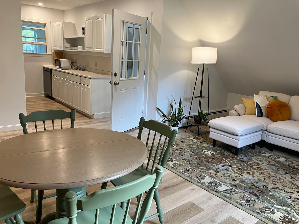 Elegant Parisian-inspired apartment ideal for one couple in the heart of the charming coastal city of Belfast, Maine. Enjoy a stylish, comfortable experience at this central downtown location, steps away from restaurants, shops, and the beautiful waterfront/trail. Free/safe overnight public parking 250 feet away. The bed is made, the table is set, there is a Bluetooth-enabled vintage radio, games, and a smart TV.