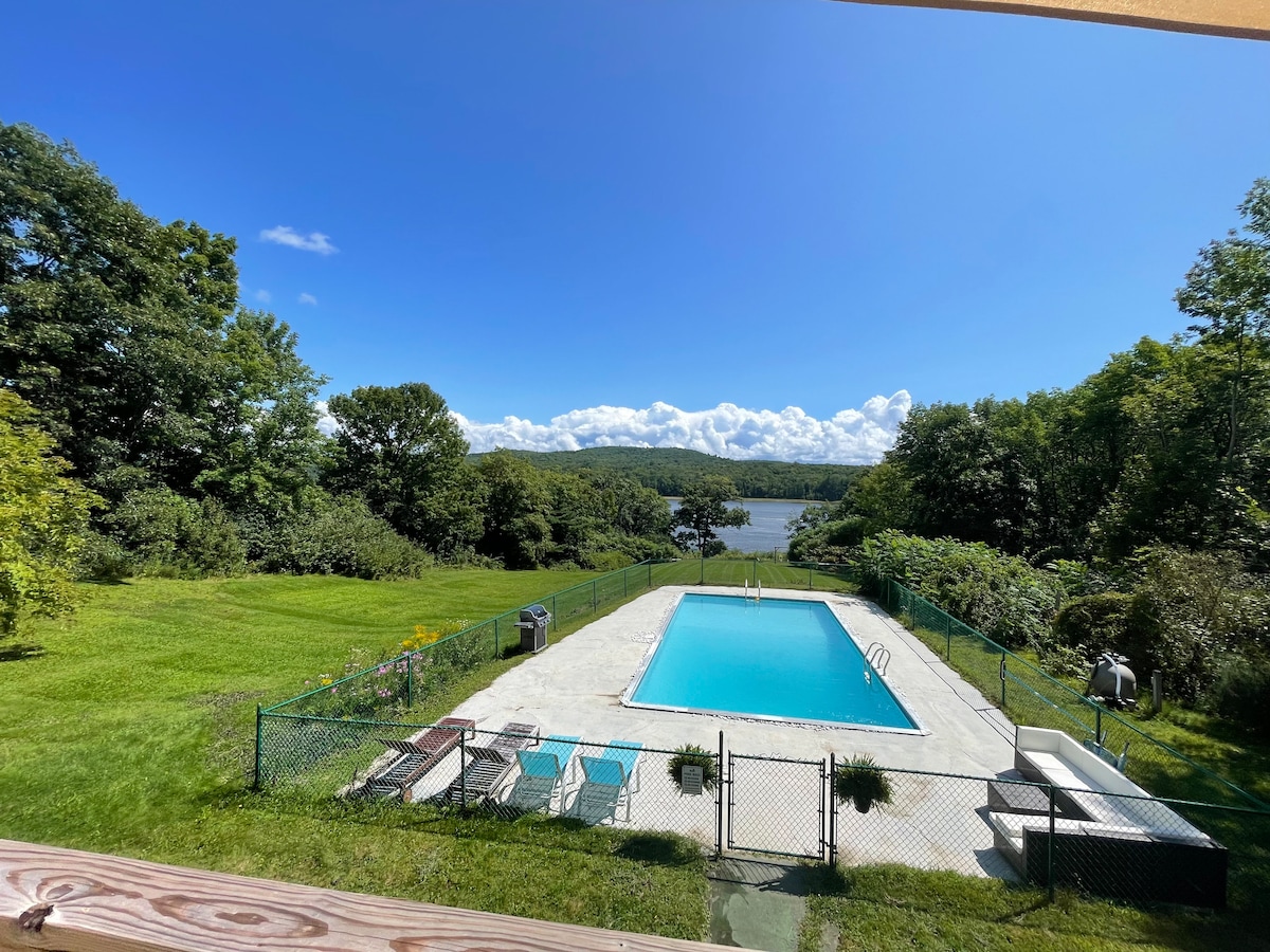 Cozy 2 Beds, 1 pullout sofa bed, 2 Bedroom, 2 Bath Log Cabin with water/mountain views on Hobb’s Pond. Relax on the dock, grill from the deck, canoe (1)/kayaks (2)/swim during the day and relax with your streaming services on the smart TV at night. 5min drive to the Camden Snow Bowl for ski/snowboard during the winter. Ice skate on the pond. Rent out a boat during your stay. 13 min drive to downtown Camden for great restaurants and a sunset cruise on a sailboat. Close proximity to hiking trails!