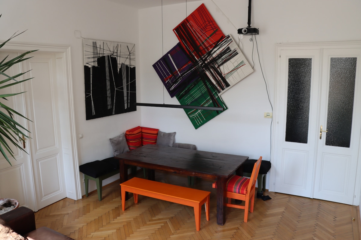 房间明亮,位于艺术公寓内,靠近市中心