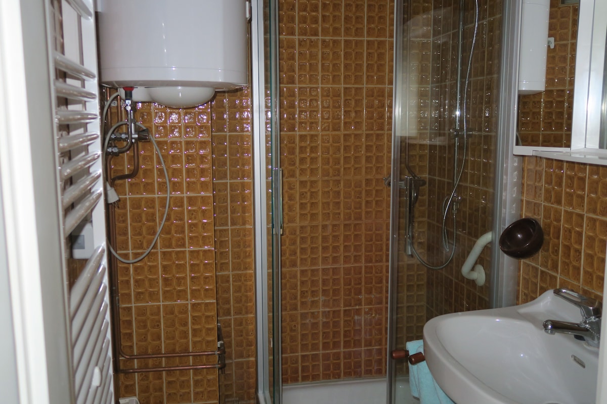The 25 square meters include an anteroom, the main room, and a bathroom. Main room: double bed, wardrobe, kitchenette +fridge, a table, and two armchairs. Suitable for couples, single travelers, business travelers. Shops and restaurants can be reached by car within 5 minutes.