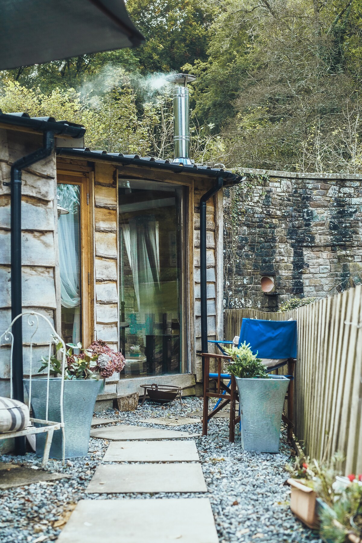 💕Romantic Waterfall Cabin 💕 idyllic serene location,wrapped in nature. sweet sounds of birdsong & lulling sound s of waterfall. Enjoy wildlife & flowers from the bedroom / balcony , otters , Herons, leaping Salmon /trout in rock pools below, colourful dragon flies and wagtails .. ultimate relaxation of nature Harmonious cosy decor encapsulating a romantic hideaway for two :-) cotton linens, arty decor, a comfy king size bed , atmospheric log burner& breakfast ! ,Arrive Relax Enjoy