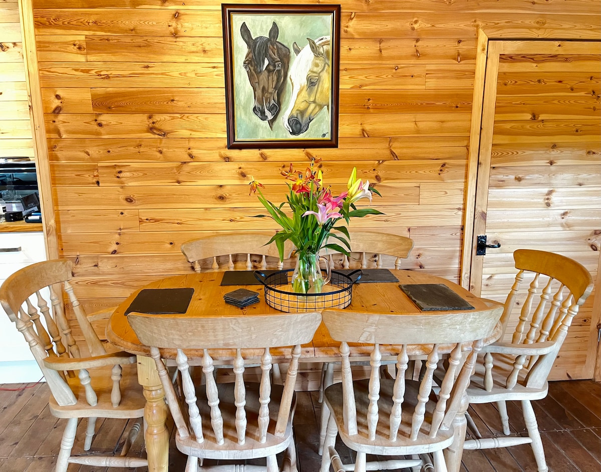 The perfect space to rest, retreat & reconnect. "You will literally feel your pulse slow down & a deep peace settle in." Glorious views both from veranda & within this warm spacious, light yet cosy cabin. Perfect place to watch the weather go by & the ever-changing views by the fire or from a hammock. You feel like you are miles away from everything whilst only being a short drive from anything you need. The privacy, hammocks and wood burner make it generally blissful! Optional breakfast/meals.