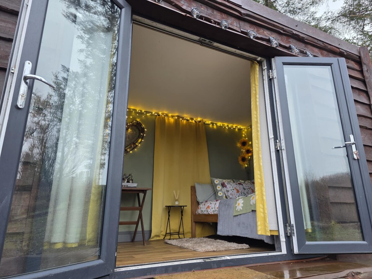Jazz's Quirky Cabin is in a woodland type area creating private feels. It is an upcycled shipping container so original features remain with conversions in place such as large patio doors at the front & wood cladding. Its a basic , natural experience offering an invitation of embrace for nature & simplicity. Be sure to read this listing fully before choosing to stay. Transparency is important to me so you know what you are booking & we will not strip any nature back for vanity purposes.