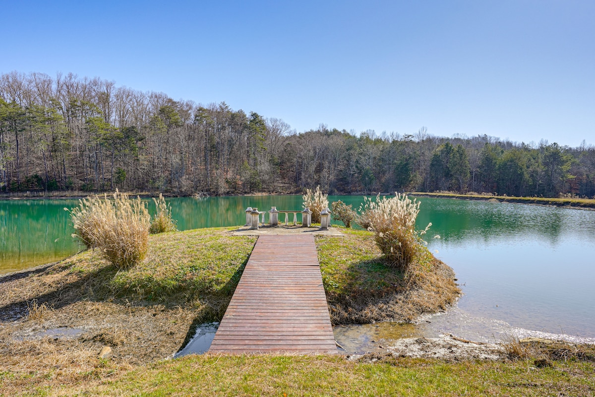 Take it easy at this peaceful getaway. This fishing cabin is located right on the water. Enjoy both mountain and waterfront views. Fish directly off the deck and take a kayak or pedal boat ride across the lake. Absolutely no pets or indoor smoking.