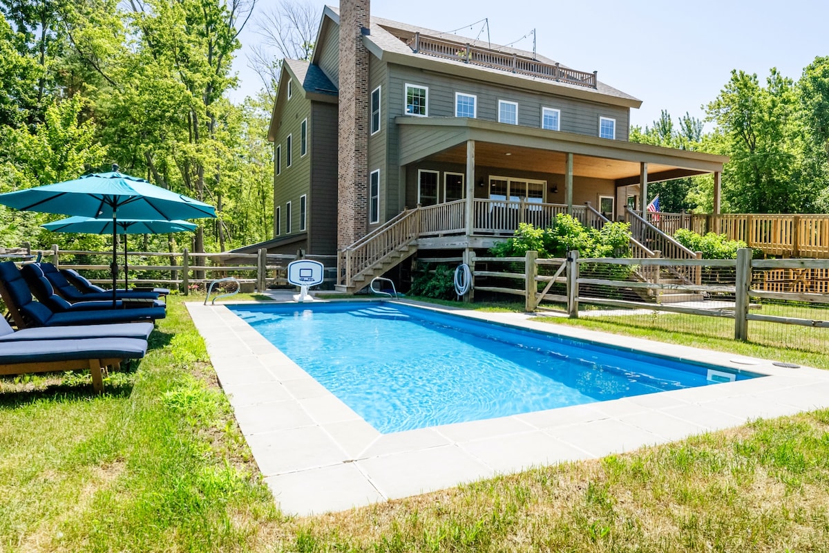 Secluded acerage in Saugatuck-Sleeps 16!-Hot tub