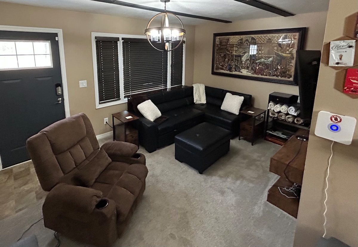 You will enjoy easy access to everything from this centrally located place. Your own private entrance from the mudroom. Only a mile from 8th St Holland. The large living area will provide you a great space to relax with a new 85" TV. Comfy bedroom with a queen bed attached to a full bathroom. The backyard you can use as your own. With full use of the fire pit, grills, and seating area. If you are looking for a peaceful quiet place to relax this is it.