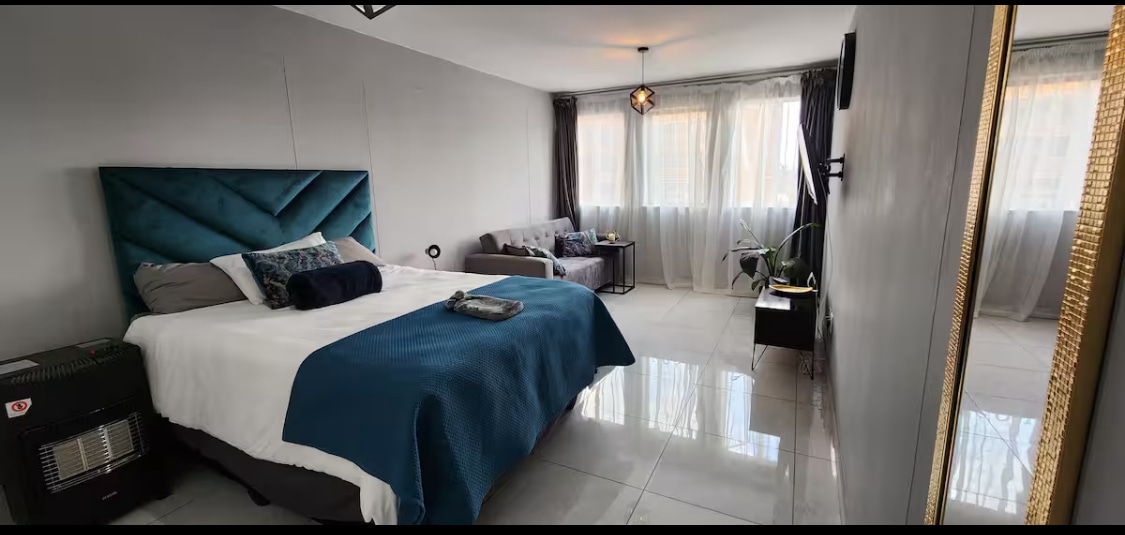 Perfect for luxury seekers, close to Loftus Stadium, the University of Pretoria, Union Buildings. It features a chic open-plan kitchen and complimentary cornflakes, coffee, and snacks. Living and dining areas flow to a private balcony. Upstairs, a bedroom with crisp white Volps linen, plush towel-equipped bathroom, and a spacious balcony for fresh air or a Braai experience. Security is a priority, with ample parking. Experience a memorable stay, blending modern comfort with thoughtful details.
