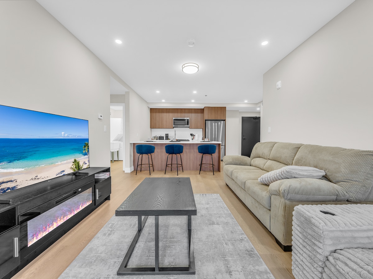 Welcome to the luxurious Boutique apartment building, The Bitcoin Building, located in the heart of Windsor, Canada. Enjoy a rejuvenating sleep on our BeautyRest hotel style mattress, TV with Amazon fire stick with 1000s of channels/Movies. Elegant furniture, soft, warm cork flooring and a ultra Cool fireplace, Patio overlooking Pelissier St, stainless steel appliances and fully stocked kitchen will leave you wanting to stay longer. Your stay includes free access to a commercial 24/7 Gym.