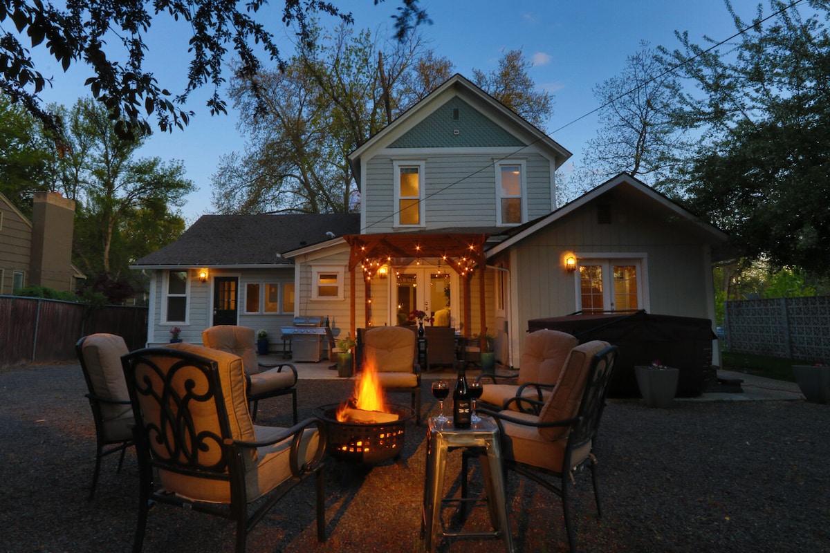 CASA LUNA ~ Welcome to our luxury bungalow with bamboo flooring, modern amenities, and a Hot Springs 52-jet Hot Tub. Indulge in a spa-like rain shower with Italian rain-textured wall tile. Two queen beds in lockable rooms with windows and greenery. Kitchen, bar, & open dining room with high end appliances & entertainment on a 65” 4K TV. Spacious rear porch for outdoor living & private hot tub. Experience ultimate relaxation just walking distance from WWU & 5 minute drive to downtown Walla Walla!