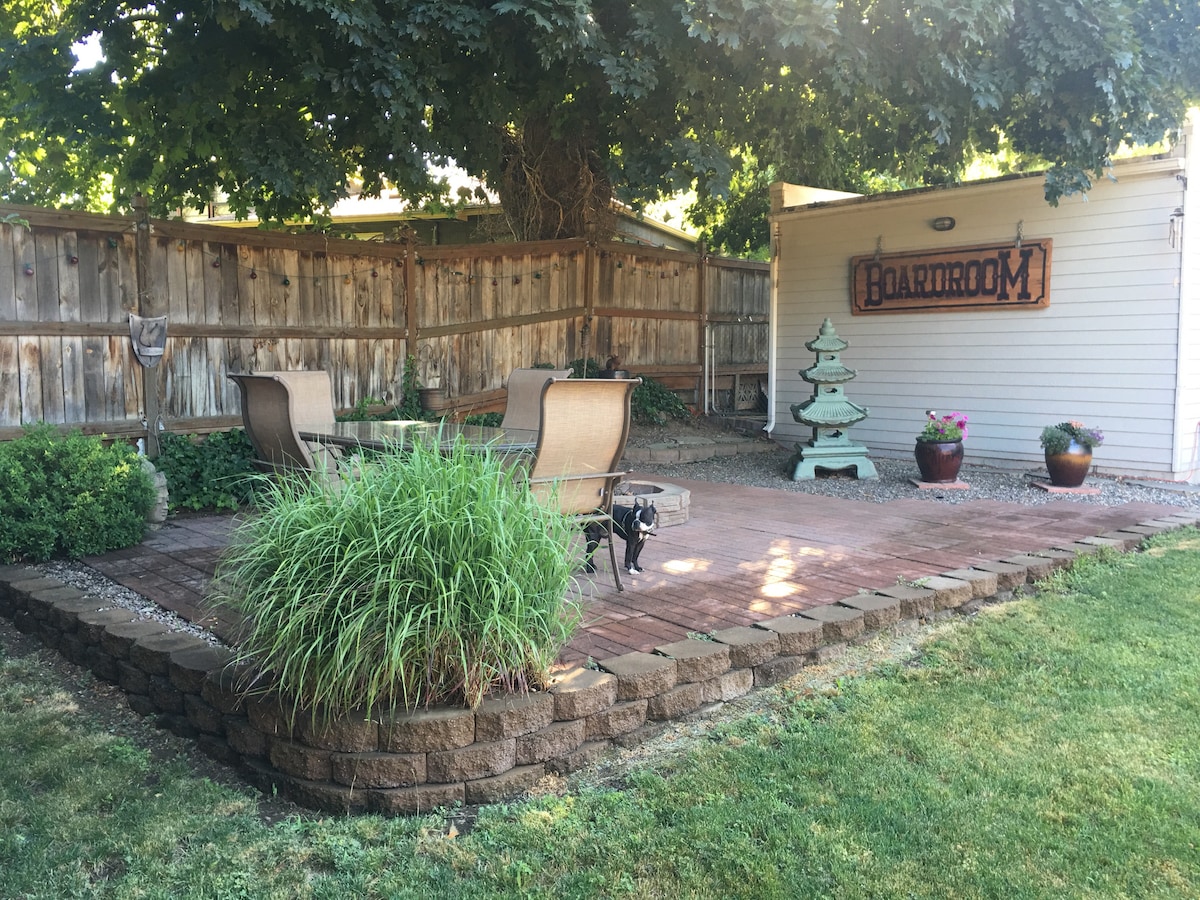 This is a great two bedroom, one bath single level home. Recently remodeled with all new furniture and beds. Full kitchen, Dining and living room with plenty of seating. large TV and WiFi available. Cozy front porch and a private/quite and relaxing fenced backyard with outdoor seating covered patio w/fan,fire pit and BBQ. Located just a few blocks from downtown and Whitman college campus. A short walk to Walla Walla's new swimming pool and Borleske Stadium Home of the Sweets baseball team.