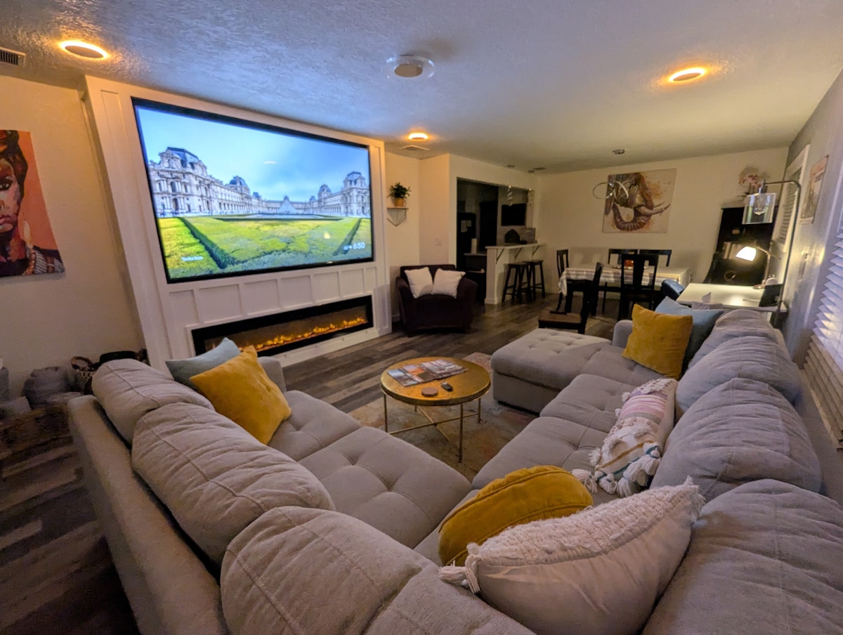 Fully renovated midcentury modern with updated conveniences. Fun and hip quality furnishings/art/ Great beds/Central Air/ Wi-Fi/LG smart T.V. Easy access ranch has wood fireplace/3 bedrooms, 2 1/2 baths/larger bedroom (queen bed) ensuite /walk in shower, two more bedrooms/queen and double/adjacent to large main bath + private 1/2 bath/laundry room / living room/dining/ chef Galley kitchen. Near beautiful Pioneer Park. Canine on approval/pet fee/fenced big yard/off street covered parking.