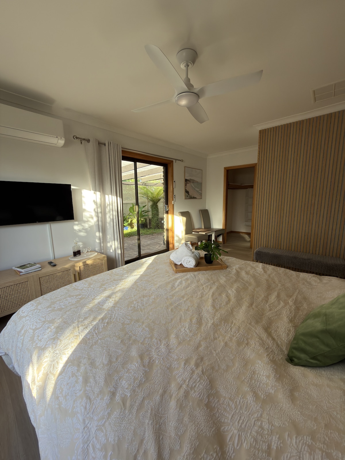 Ferns by the Sea is an exclusive, recently designed private suite with its own discreet entrance, offering a refined coastal escape just a walk from Moonta Bay jetty and café. Sink into a luxurious king-size bed, enjoy the elegance of a private ensuite, and unwind on a spacious, secluded patio framed by a lush fernery. Thoughtfully curated for comfort, privacy, and indulgent relaxation by the sea.