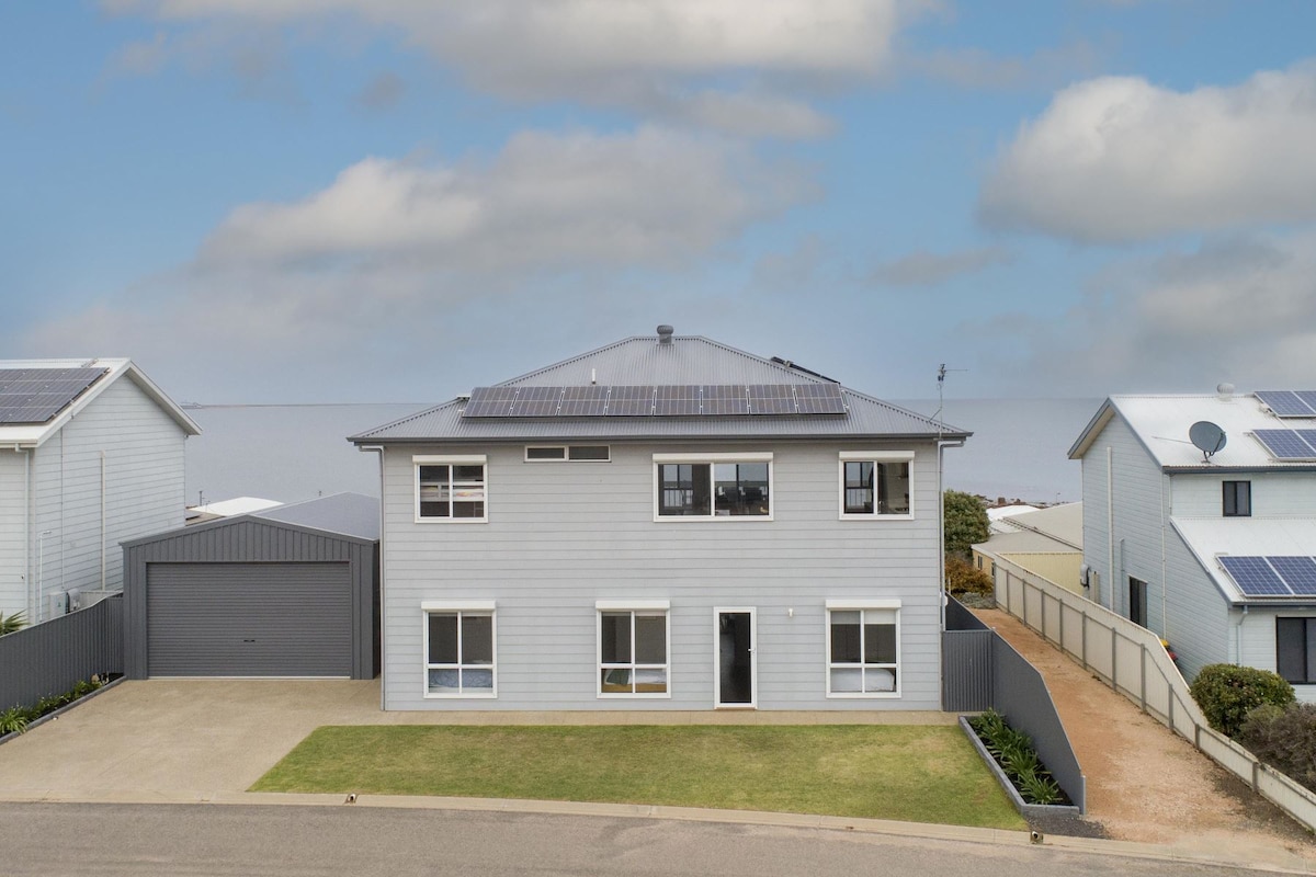 *Loose supplied linen option available or BYO* Newly renovated property situated on the beachfront with near 180deg views. No roads between the property and the beach with convenient stairway access to beach at the front. Neighbouring property, Sandcastles 2 Moonta Bay may also be of interest depending on availability and your group size. Note, a security camera at Sandcastles 1 shed monitors the rear of property where property is entered and rubbish bins are stored for security.