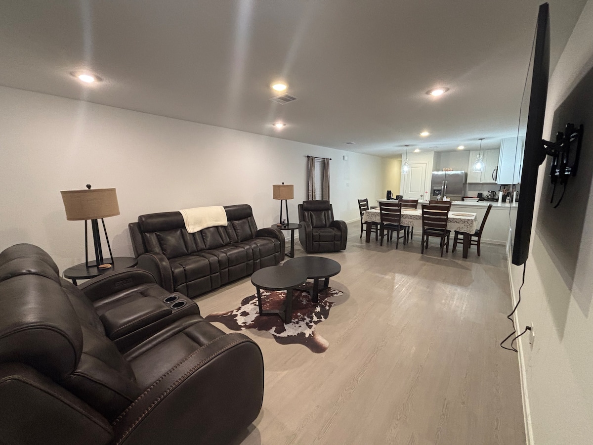 Welcome to our spacious 4-bedroom, 3-bathroom home! Perfect for families or groups, it features a cozy living area, fully equipped kitchen, dining space, and a private backyard with a BBQ grill. Enjoy the community pool and gym, plus a secure garage. Close to shopping, dining, and parks. Free Wi-Fi, fresh linens, and keyless entry provided. Book now for a comfortable stay!