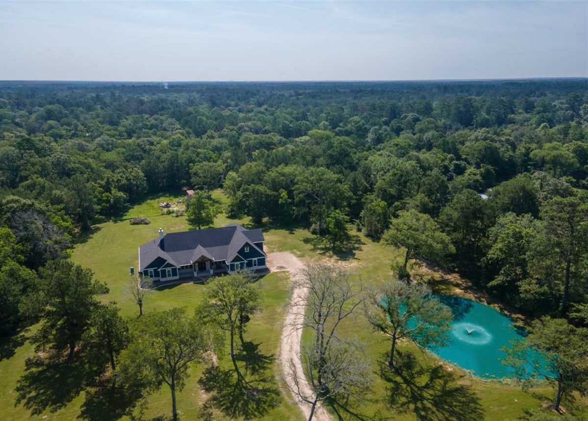 Welcome to our slice of paradise nestled on 70 sprawling acres of pristine ranch land! Escape the hustle and bustle of city life , 30 Miles from Houston and experience the tranquility of our secluded retreat. As you drive up the gravel road, the majestic tall trees and expansive fields welcome you to your own private oasis. Our ranch house, with its charming rustic exterior and modern amenities, serves as the perfect home away from home for your getaway.