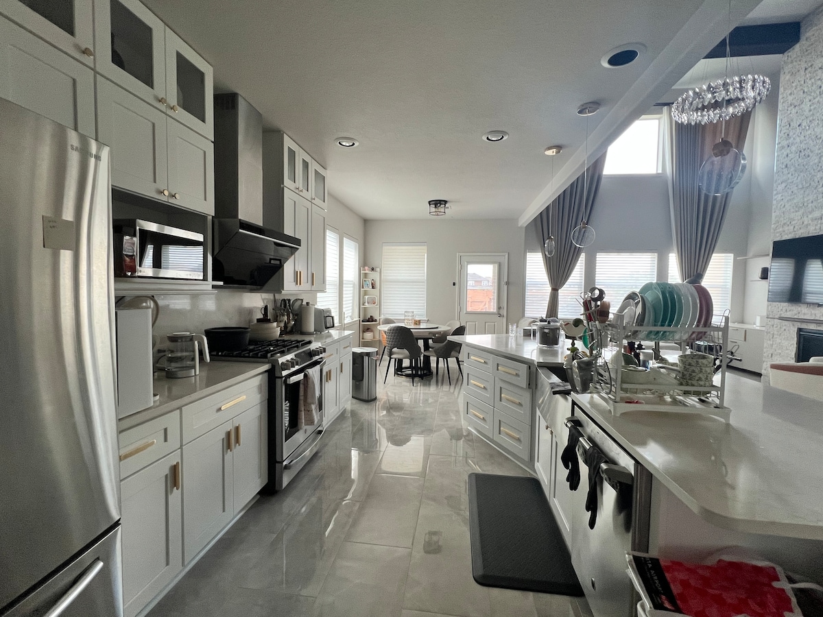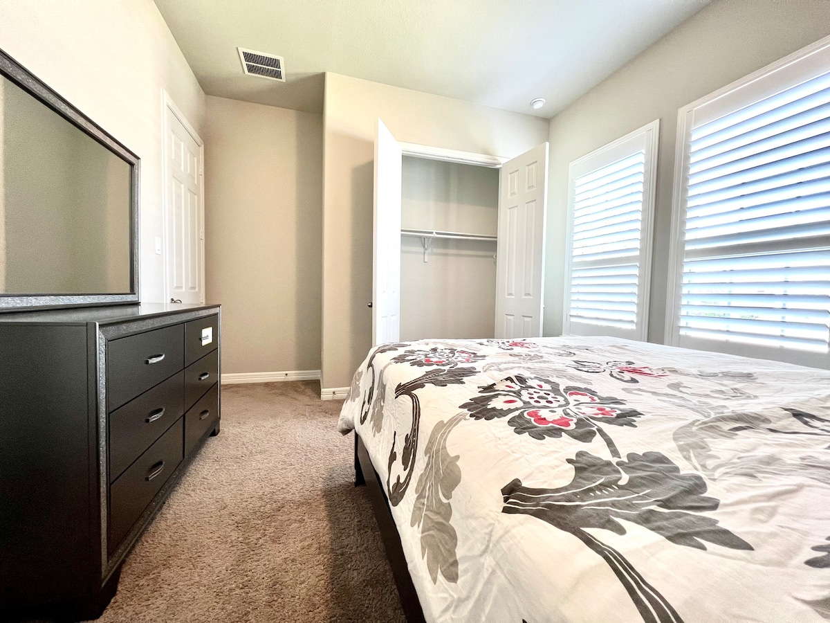 Charming house sitting at the end of a quiet cul-de-sac, with a view of lakes & meadows around. You'll find an open-plan living area with windows that showcase the views of the lake and meadow. Living room with 75" WiFi Smart TV, modern kitchen with spacious countertops and large middle island will be perfect for preparing meals or entertaining guests. There are four bedrooms in the house, each with its own unique charm with walk-in closets and comfortable beds, ensuring a good night's sleep.