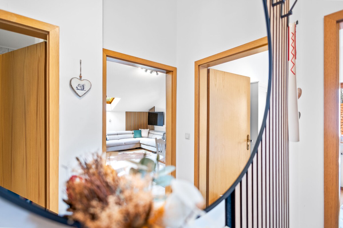 Diese Altbauwohnung wurde von mir frisch und liebevoll renoviert und bietet einen unvergesslichen, unverbauten Ausblick mit Südbalkon. Ich bin mir sicher, Sie werden meine Heimat lieben wie ich. Wanderungen oder Radtouren können direkt vor der Haustür starten, und auch die Skipisten sind nur eine große Wiese entfernt. Die nächste Bushaltestelle ist nur ca. 200 m entfernt. Bei schlechtem Wetter gibt es einen großen Fernseher mit Netflix und schnelles WLAN.