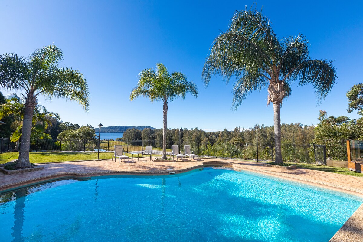 Cosy fireplace! All linen/towels provided. Serendipity has wonderful water views. It is private, spacious & in a perfect tropical setting right on the edge of beautiful Smiths Lake. Palm trees, lake views & level access to the sandy lake is just steps away. Kayak to stunning Sandbar Beach. Cafe, playground, boat ramp just opposite. Pacific Palms is an oasis surrounded by natural beauty - amazing beaches, National Parks, Nature Reserves, birdlife and much more!