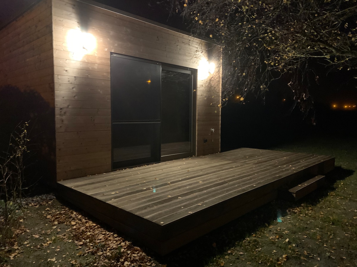 带泳池和桑拿的舒适小屋