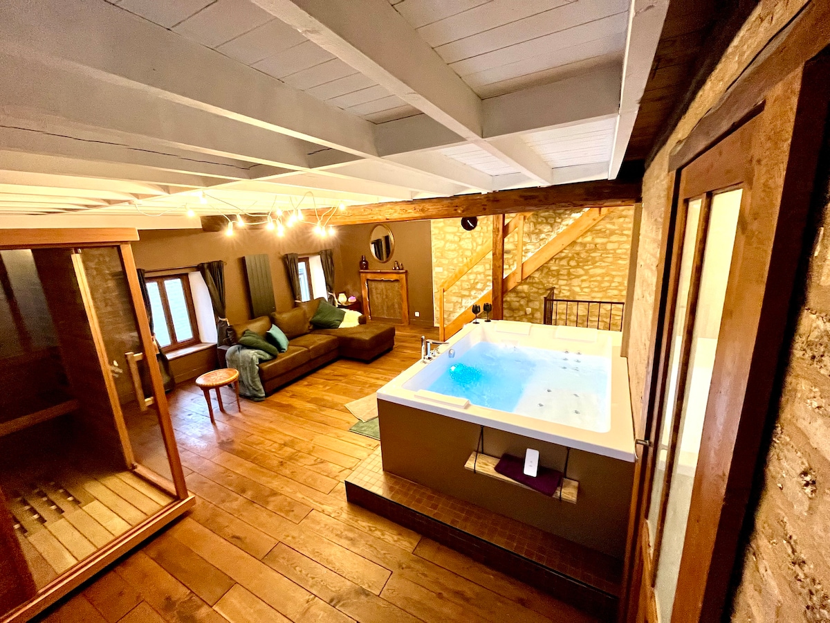 Maison d'hôtes de charme et de caractère en pierres de Gobertange, au coeur du Brabant Wallon dans le joli village de Mélin. Pour deux personnes, pour une nuit, ou quelques heures, au calme et dans une déco raffinée et originale… Cuisine équipée, salle à manger et un salon cosy, terrasse et son spa (en option, en saison, 30€) . Espace Wellness avec douche, baignoire balnéo Jaccuzzi, sauna, sofa. Chambre, lit king size!