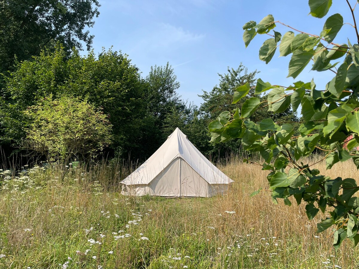 Tente glamping sur le thème des EXPLORATEURS au cœur de la nature attenant à la "Ferme de la Chevêche" - à 15 min de Namur, portes des Ardennes. Hébergement à la décoration scandinave et naturelle. Atmosphère cocoon et romantique, parfaite pour les couples, avec la possibilité de loger 4 personnes. Brasero + BBQ + poêle à bois à disposition. Toilette sèche à quelques mètres de la tente. Pour se laver : cruche d'eau et bassine à l'ancienne. Vue imprenable et couchers de soleil incroyables !